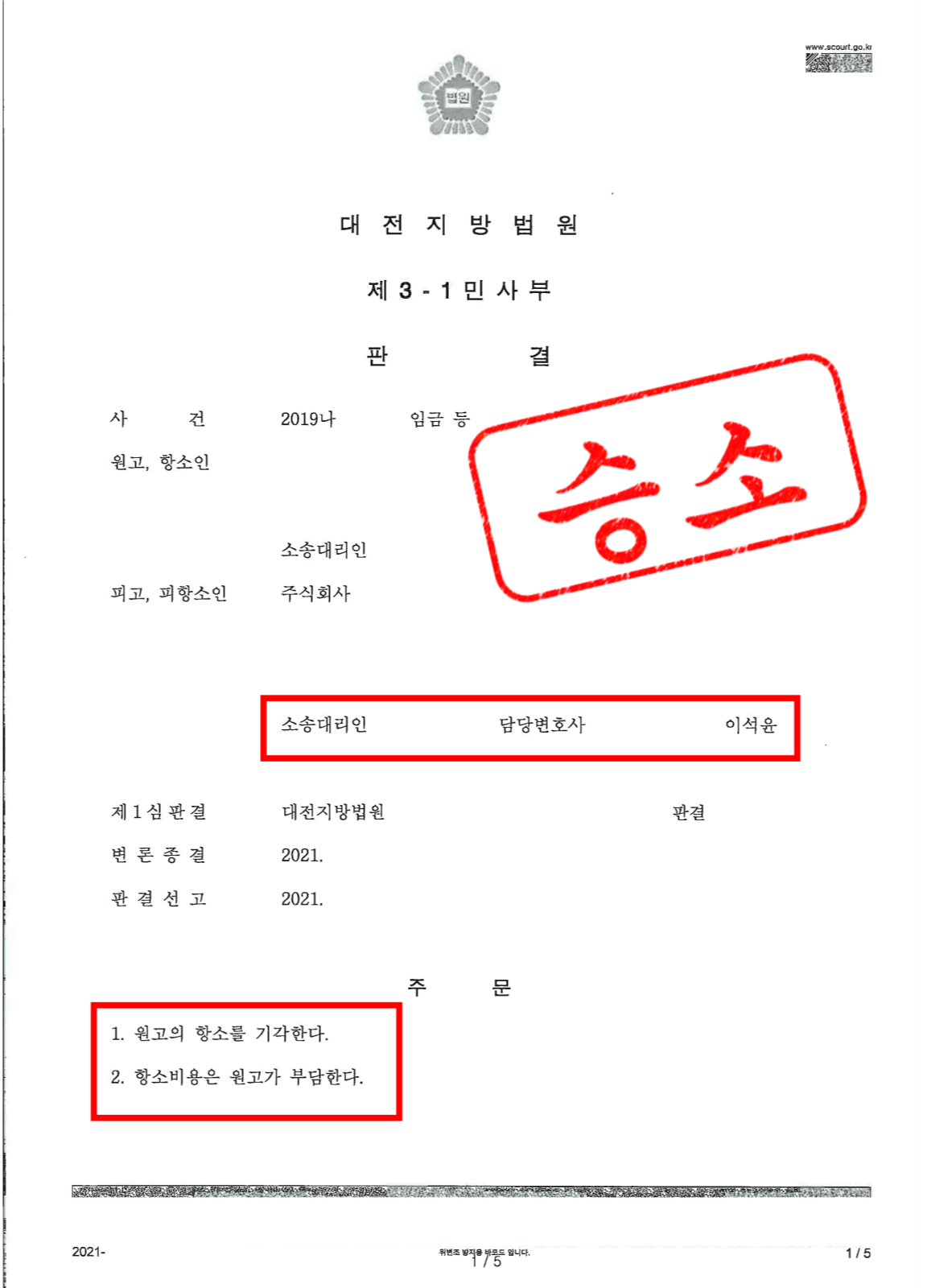 안녕하세요, 법률사무소 태라입니다.이번 포스팅은 이석윤 변호사님이 수행한원래 받아야하는 퇴직금 및 연차수당을 초과하여 요구한항소에서 방어한 사례를 소개해드릴까 합니다.  ―――――――――――사건 개요  다른 많은 임금 지급소송과 같이 근로자였던 원고는 고용주였던 피고에게 퇴직금 및 연차수당의 지급을 요하는 소송을 진행한 것이 이번 사건의 시작이었습니다. 원심에서는 원고에게 퇴직금과 30일분의 연차수당을 지급하라고 하며 원고 승소로 진행 되었으나…